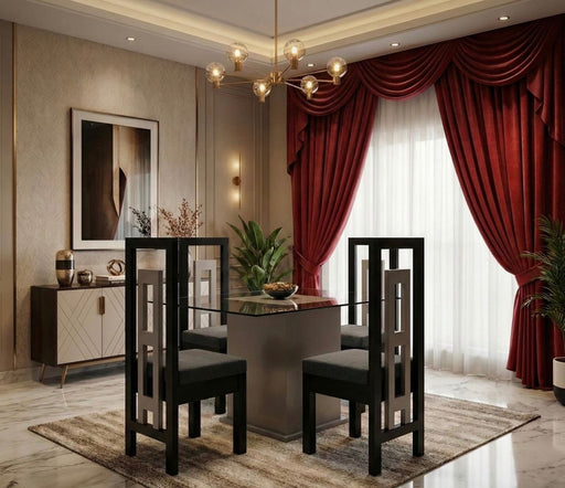 Comedor Moderno 4 Sillas con Tope de Cristal Eleva el estilo de tu hogar con este elegante comedor fabricado en pino americano de alta calidad, dis...