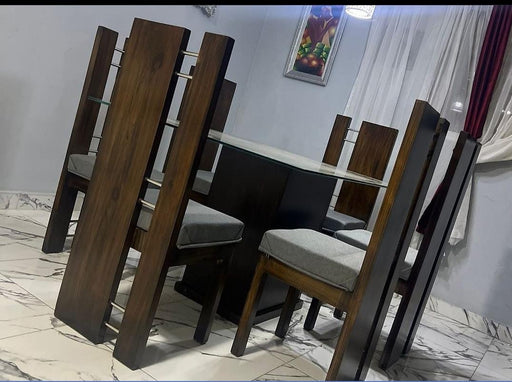 Comedor 6 silla gris rayado tapizado con tope cristal