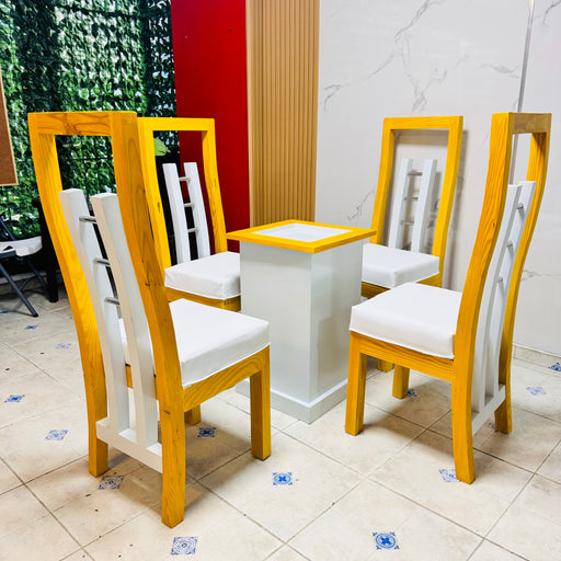 Cómedor 4 silla tope cristal Madera color natural con blanco