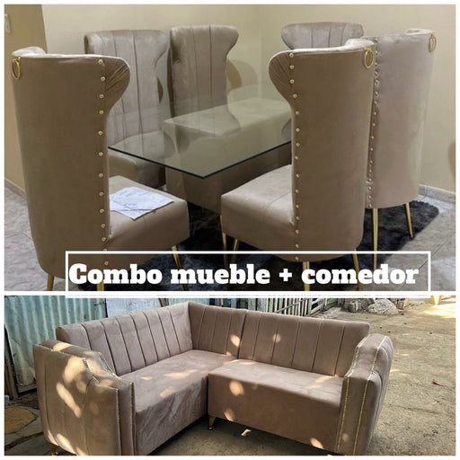 Combo mueble 3/2 con mesa de centro  más juego comedor de 6 sillas, tapizado micro fibra