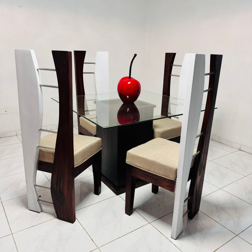Comedor tipo S 4 silla madera tope cristal color caoba con blanco