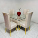 Comedor tapizado beige 4 silla pata de metal tope de cristal