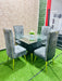 Comedor tapizado gris oscuro para de metal tope de cristal