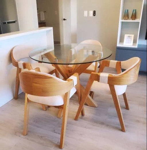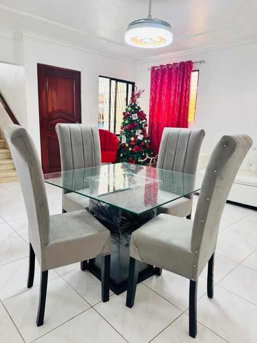 comedor para el hogar 4 silla tapizado Tamaño: Comedor tipo S 4 silla de madera tela: microfibra gris tope: cristal centro: de madera pino amer...