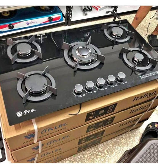 ESPECIFICACIONES: Color Negra, Encendido eléctrico, Tope En Acero Inoxidable, Parrillas En Hierro Fundido, 5 Quemadores En Hierro Fundido, Rostiz...