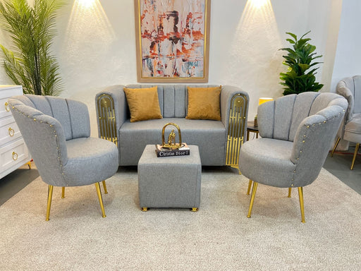Juego de Mueble Crema con lineas Dorada Tela de Micro Fibra, Sofá de 2 Personas. incluye 2 otomanes y Cojines Decorativo.