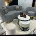 Belleza de mueble curvo con flor de loto y otoman y mesa redonda en color gris , y blanco en terciopelo.