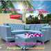 MUEBLE EN L AZUL CAPITONEADO CON MESIT ADE CENTRO
