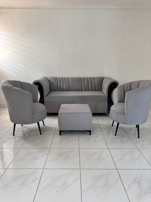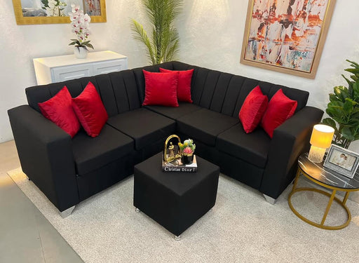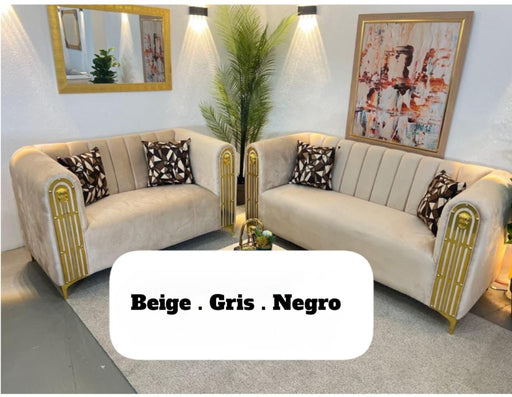 Sofá negro con metal dorado mesa de centro dos butacas flor de loto color amarillo tela microfibra Producto 100% Nuevo y garantizado paganlo a reci...