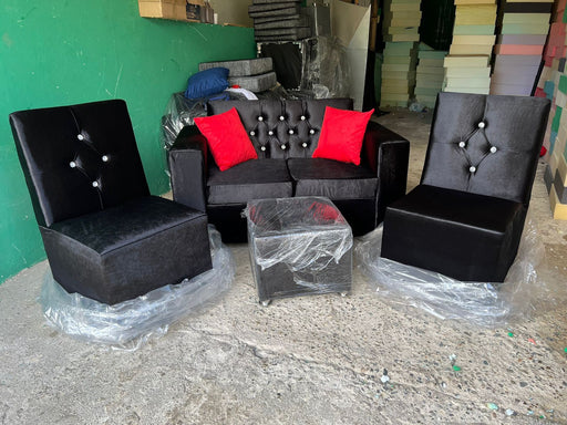 juego para la sala sofá con 2 butaca negro micro fibra, incluye mesa de centro