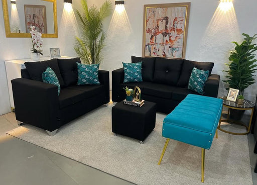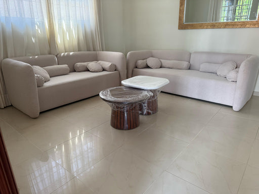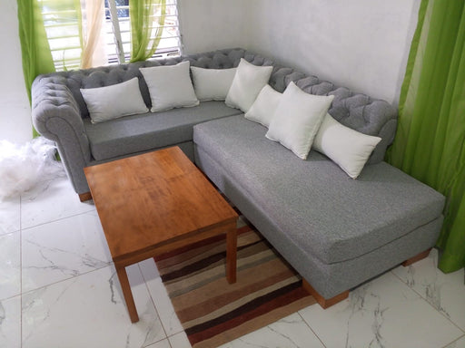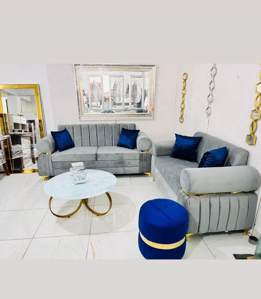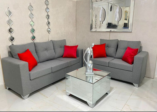 Ver todos los detallesEste sofá consta de 2 muebles. 1 de 3 asientos medida 60 pulgadas 1 de 2 asientos medida 40 pulgadas 1 una mesa de centro tapizada 5 cojines de...