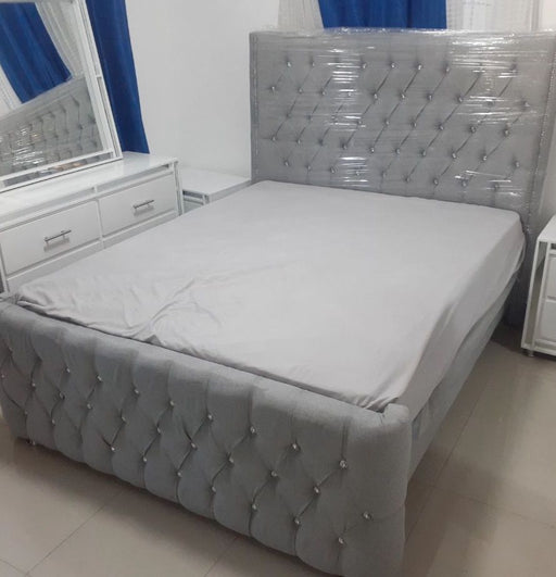 Juego de espaldar Capitoneado Gris en 39¨ en Micro Fibra con Chambrana de Hierro y Colchon ORTOPEDICO, 39¨x75¨( PLAZA Y MEDIA) 1 1/2.