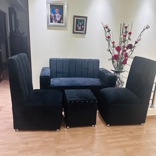 juego para la sala sofá con 2 butaca negro micro fibra, incluye mesa de centro